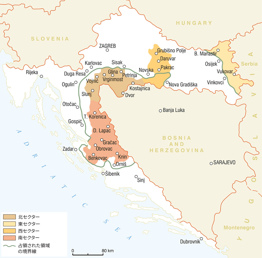 1991年末以降、クロアチアの26.5%(面積約15,000 km²)がセルビア人反乱軍の支配下に入り、1991年12月19日には「クライナ・セルビア人共和国」の設立が宣言された。クロアチアの住民がテロ行為と迫害に苦しむ中で、1991年末までの紛争による追放者は約55万人にのぼり、後にはボスニア・ヘルツェゴビナからの20万人の難民が加わえられた。