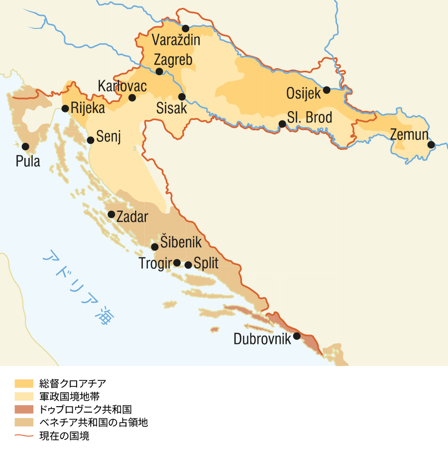 18世紀を通して、クロアチアはハプスブルク帝国とヴェネツィア共和国の間で分割されていた。さらにクロアチアは、ハプスブルク帝国の一部であったスラヴォニアと共に、行政的に帝国のハンガリーの一部に属していた総督統治下の「バンスカ・フルヴァツカ」(直訳では「総督クロアチア」)と、ウィーンの直接的統治下であった軍政国境地帯(「ヴォイナ・クライナ」)に分割されていた。ヴェネツィア支配下の地域はダルマチア地域とイストリア地域に分かれていた。