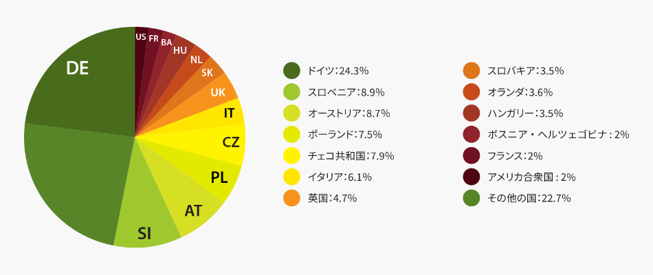 1980年から現在まで、外国人観光客の割合は国内観光客よりかなり大きく、ほとんどの外国人観光客はドイツ、スロベニア、オーストリア、イタリア、チェコとスロバキアからのものである。過去10年間でみるとポーランド、オランダ、イギリス、ハンガリー、フランス、そしてヨーロッパ以外の国からの観光客数も増加した。