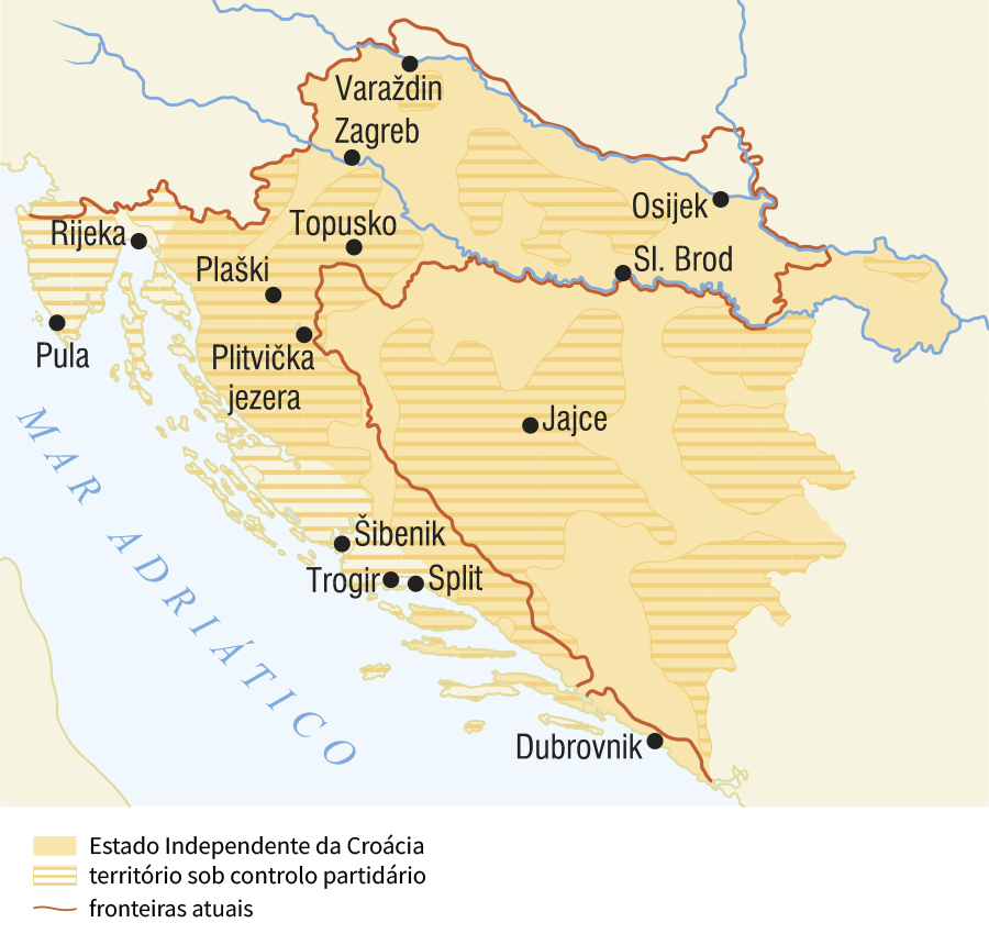 Para além dos ustashas, que, sob ordens alemãs, introduzem leis raciais, começando a perseguir sérvios, ciganos, judeus e dissidentes políticos, também os chetniks, compostos por unidades paramilitares sérvias e membros do exército real derrotado, colaboram com os ocupantes. Os chetniks também operam em certas partes da Croácia e o seu objetivo é estabelecer uma Grande Sérvia sobre as ruínas da Jugoslávia, que para além da Sérvia, incluiria toda a Bósnia e Herzegovina e metade da Croácia.