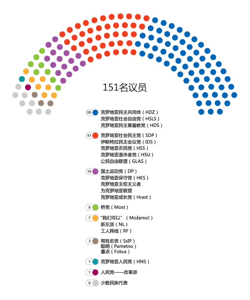 克罗地亚议会是公民的代表机构,也是行使立法权的机构。它最少有100名议员,最多有160名议员。议员委任为非强制委任而议员享有豁免权。克罗地亚议会有一名议长和一名或多名副议长。